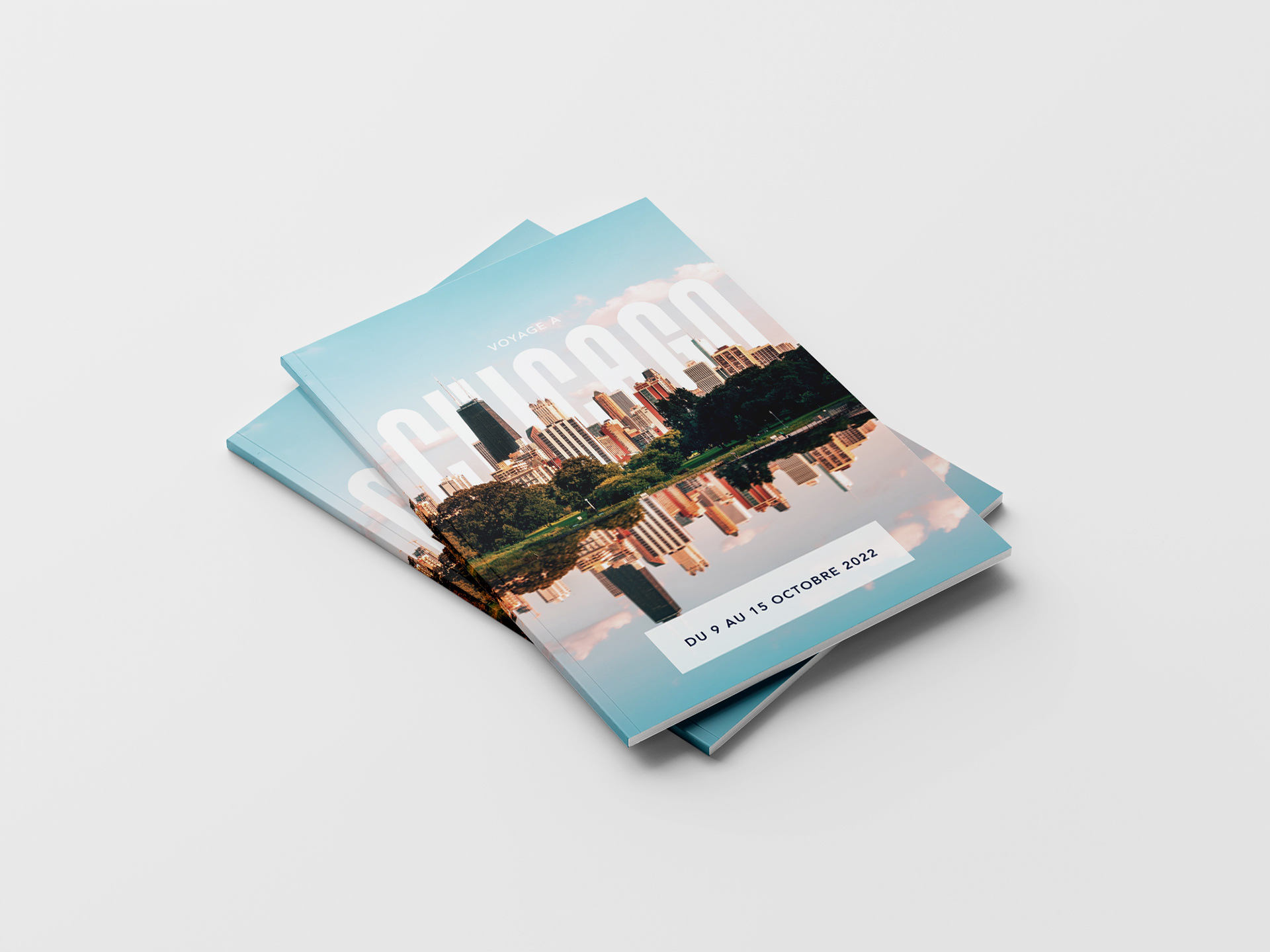 Conception et création graphique d'un carnet de voyage professionnel print à destination du voyage d'affaire d'un club privé, en déplacement à Chicago.